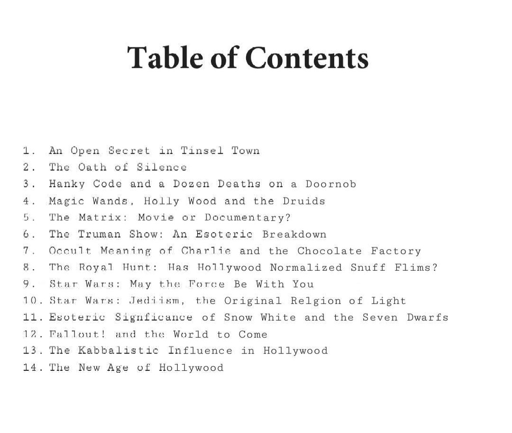 In this book, we will cover the Occult Origins of Hollywood, How Mind Control Rules in Hollywood, The Oath of Silence, the Literal Religion of HollyWEIRD, and how our "entertainment" has been used not just to control the populace but enslave the entire world to control!
